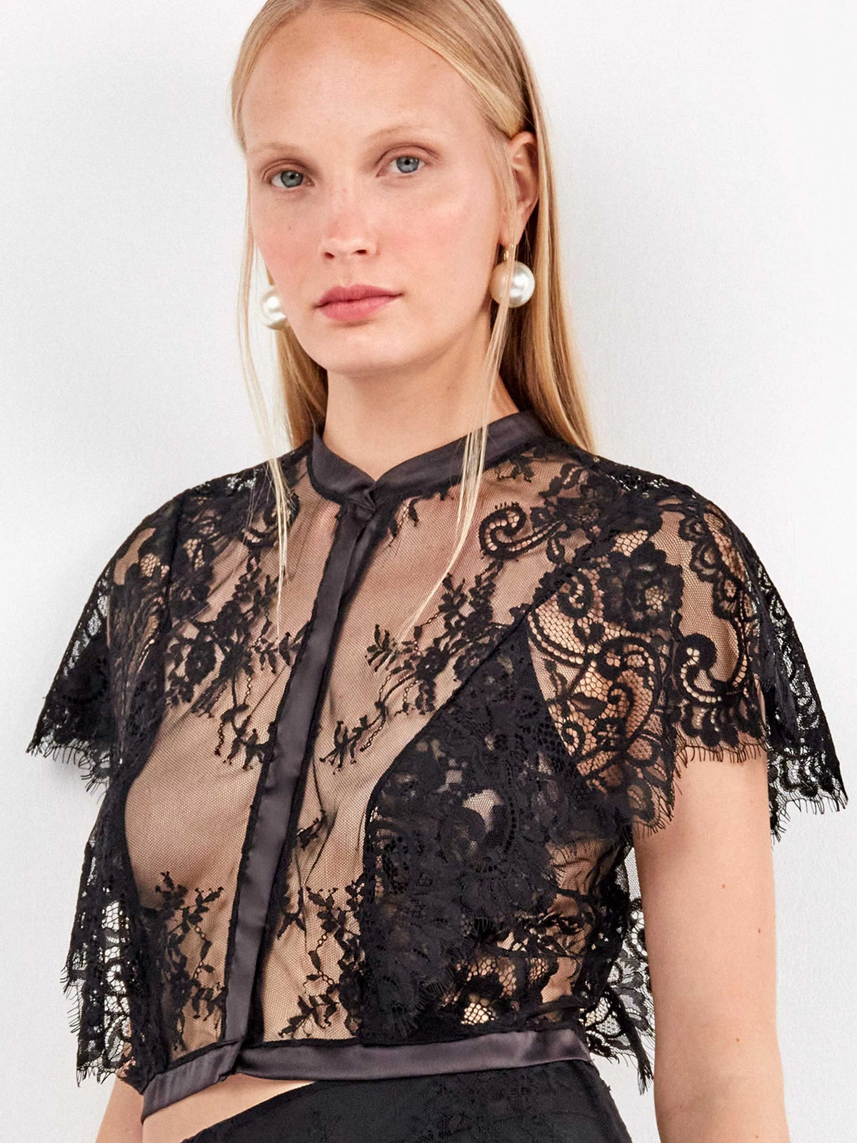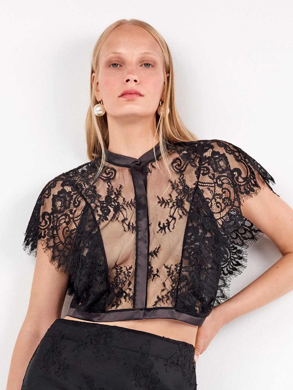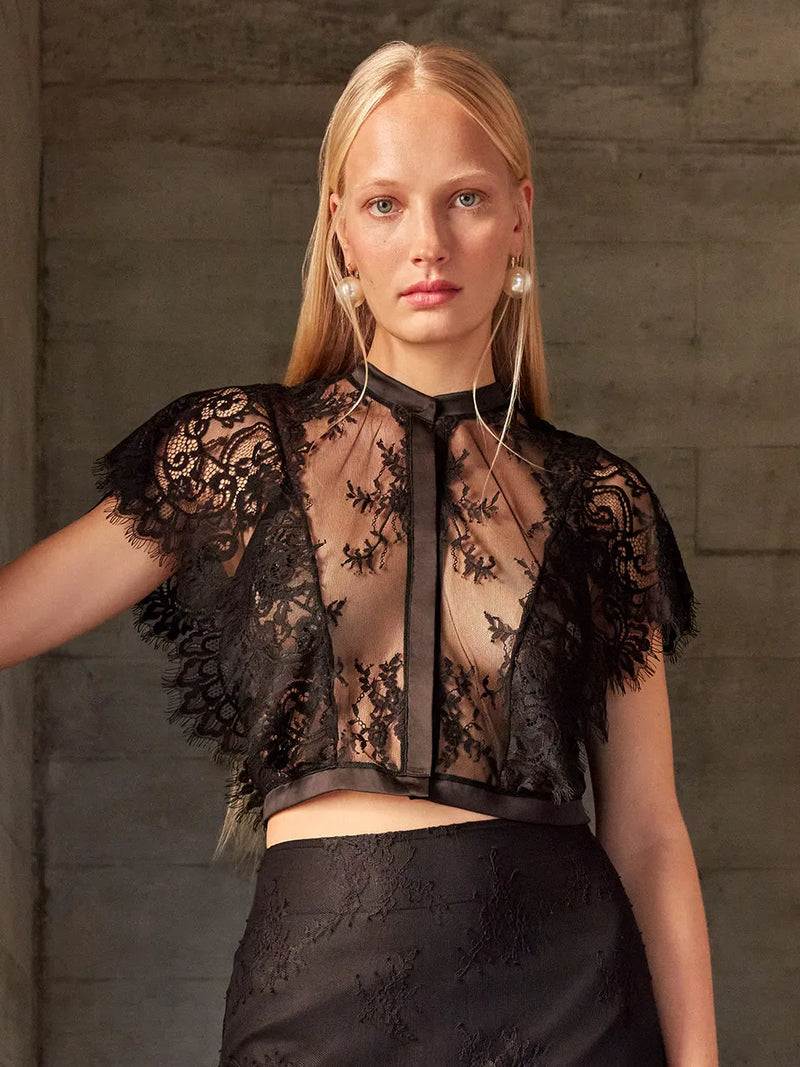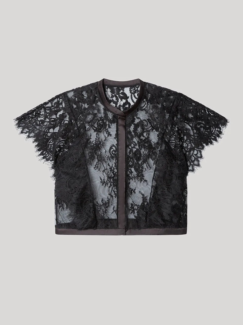 Camicia Elegante con Colletto Mao e Pizzo